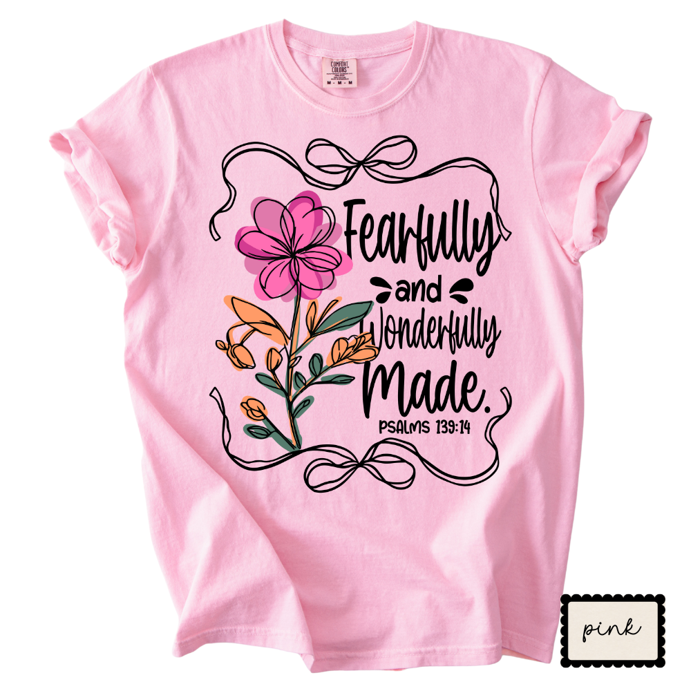 Fearfully & Wonderfully Made Christian Tee | Floral Bible Verse Shirt | Women’s Faith Apparel